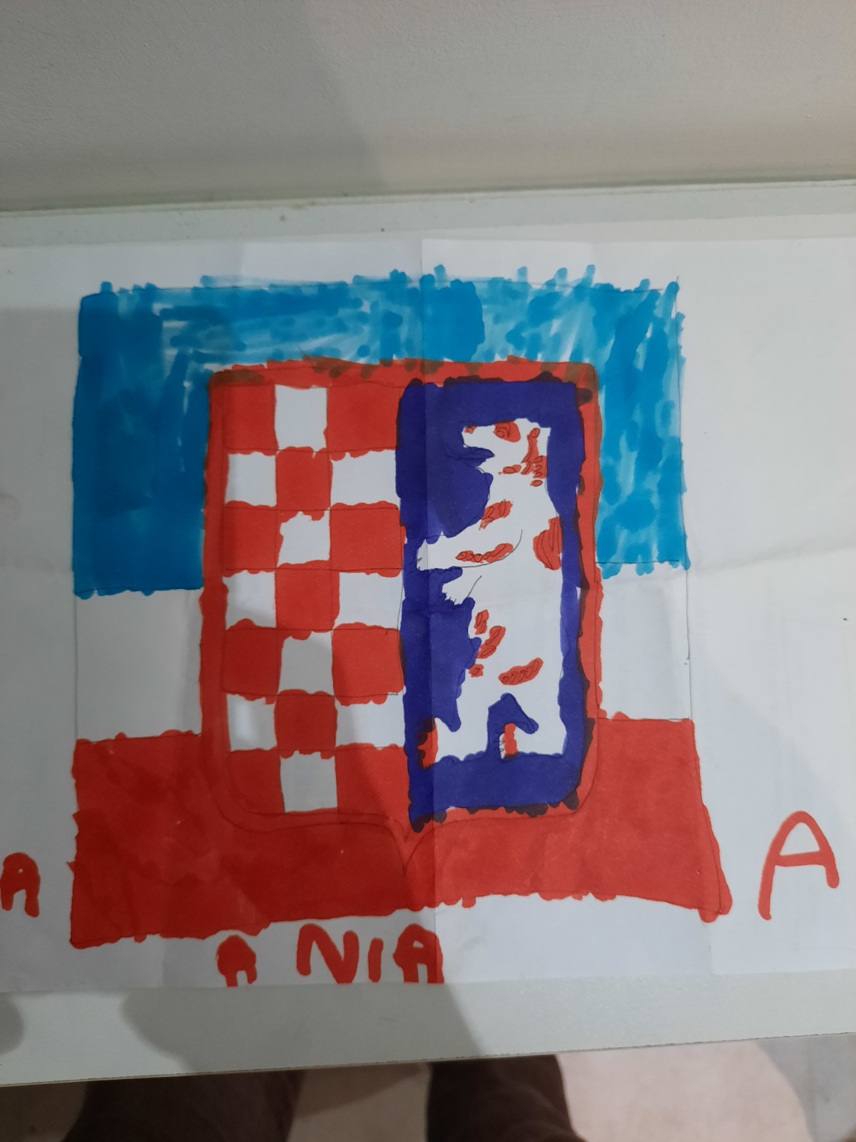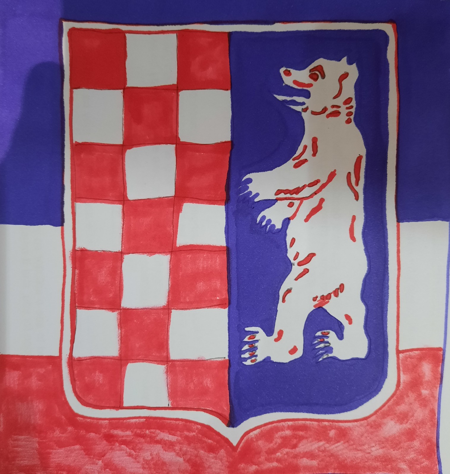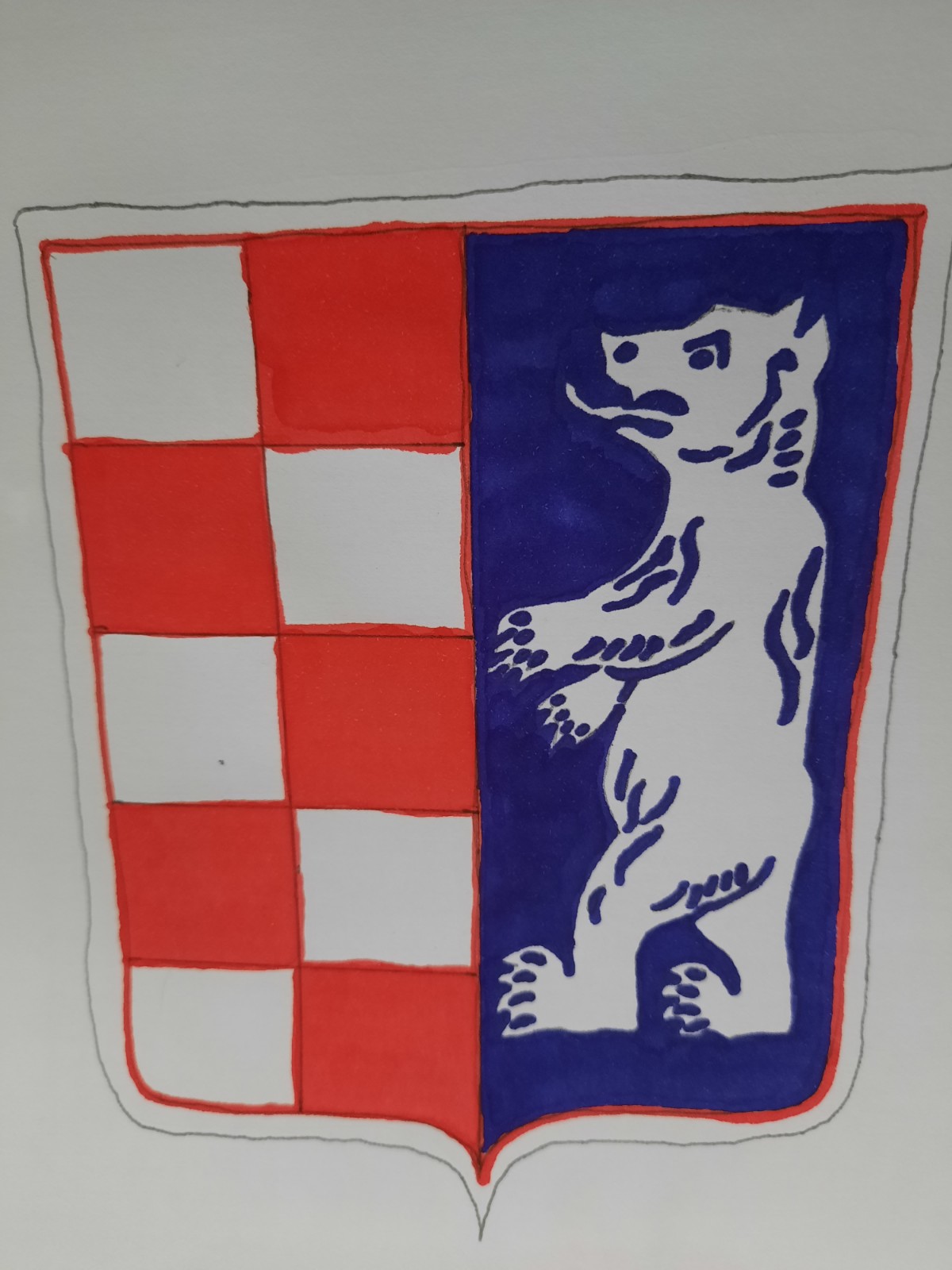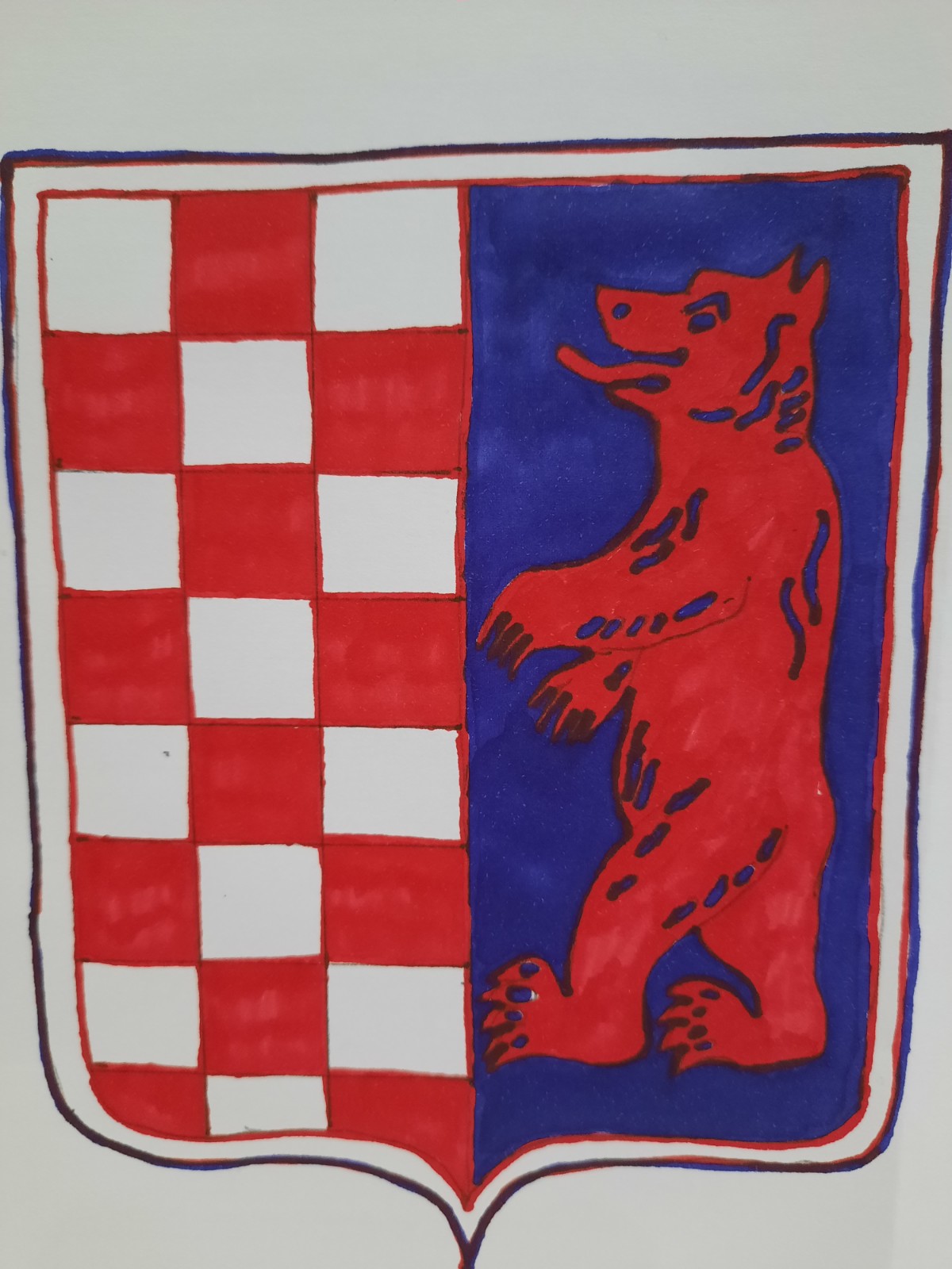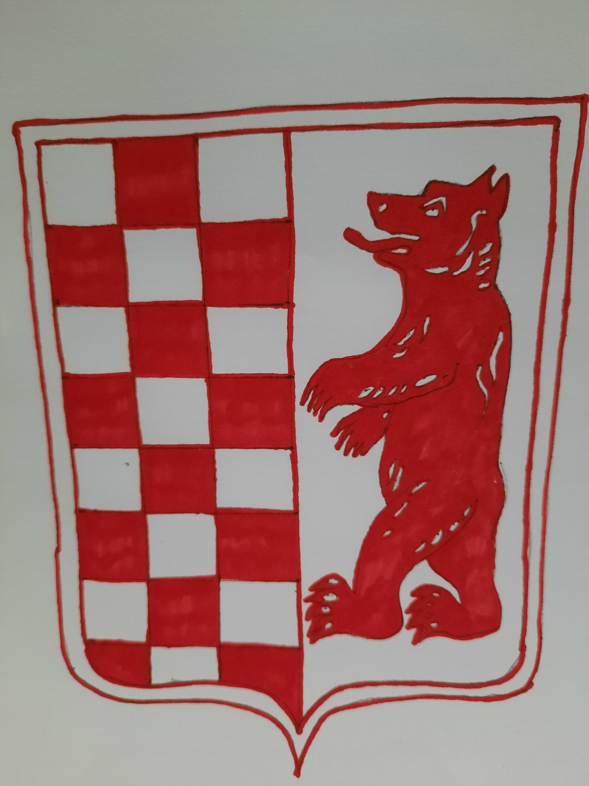 Wahałem się mocno przy wyborze tła po prawej stronie, za Niedźwiedziem. Białe czy niebieskie (białe też miałoby sens: Czerwona Ruś na byłej, Białej Chorwacji np… – stanęło przy niebieskim, gdyż brakowałoby tego koloru Nawii w herbie wg mnie, a poza tym…z niebieskim bardziej podobało się mojej córce 🙂 ) i/lub podmiankę szachownicy na 8 biało-czerwonych pasów (również symbolizujących zarówno przemieszanie/powiązanie/więź Jawii z Nawią, teraźniejszości z przeszłością, pamięć, krew, honor itd. w liczbie symbolizującej nieskończoność (8 pasków) i nawiązującą do wielu innych rzeczy, od zodiaku począwszy (po 12 białych i 12 czerwonych kwadratów)…
